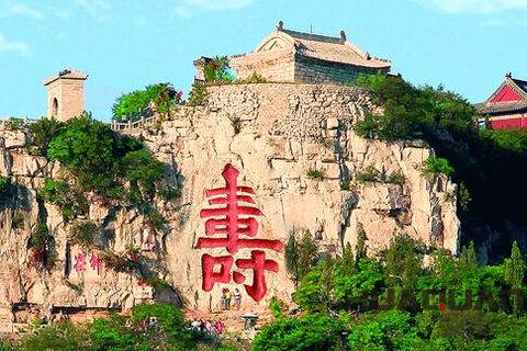 說起云門山,山雖不高(海拔421米),但平原拔笏,松蔭蓋足,有千仞之勢,在山東乃至全國享有盛譽(yù)。主峰大云頂,有洞如門,高闊過丈,南北相通,遠(yuǎn)望如明鏡高懸。夏秋季節(jié),常有云霧穿門而出,故名“云門”……因山坐落在青州城南,故又稱“南山”。值得一提的是,山上有一個(gè)巨大的“壽”字,人稱為“云門獻(xiàn)壽”。據(jù)華全發(fā)電機(jī)組了解,此巨“壽”是明嘉靖年間衡王府管家周全為給衡王朱厚矯(時(shí)住青州)祝壽而請人鐫刻的,“壽”高7.5米,寬3.7米,字體結(jié)構(gòu)嚴(yán)謹(jǐn),端莊大方,坐南朝北,人稱“天下 壽”。這個(gè)“壽”字如此之大,以至于人們常用“人無寸高”來形容。僅“壽”中的“寸”就有2.3米高,如果一個(gè)成年人攀上去,腳蹬“寸”勾,他的頭部也到不了“寸”頂。