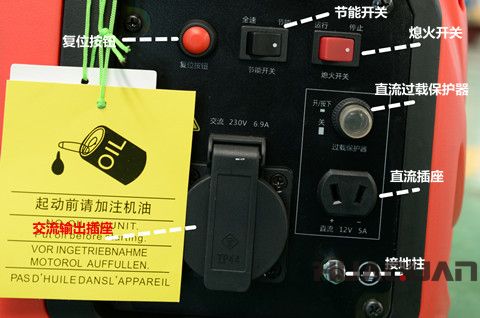 節能:當節能開關處于“節能”位置,發電機處于節能狀態。當斷開用電設備或使用低功率用電設備時,發動機自動回到低轉速狀態,從而可以減少發動機油耗。