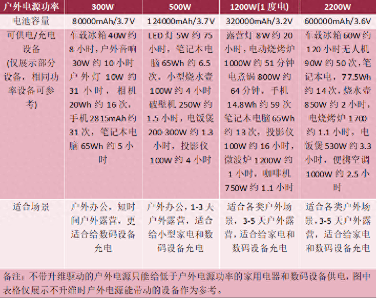 戶外電源的功率,從150W到2200W,各種規(guī)格都有,功率越大能帶動的設(shè)備自然越多。買小不夠用,買大了又浪費(fèi),所以大家在選擇戶外電源時(shí),一定要看自己主要的使用場景。