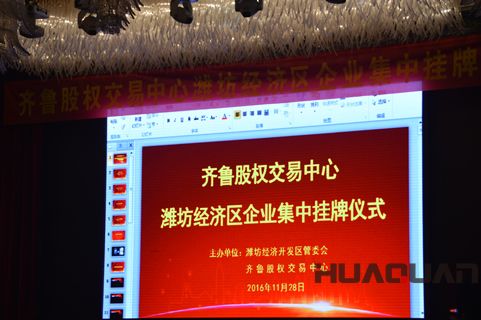 11月28日,風(fēng)和日麗,暖風(fēng)習(xí)習(xí),齊魯股權(quán)交易中心山東省濰坊經(jīng)濟(jì)技術(shù)開發(fā)區(qū)企業(yè)集中掛牌儀式在濰坊新富佳悅大酒店會(huì)議中心成功舉行。儀式上,包括濰坊華全電力有限公司(股權(quán)簡(jiǎn)稱:華全動(dòng)力,股權(quán)代碼171006,掛牌價(jià)8.10元)在內(nèi),來自開發(fā)區(qū)內(nèi)的27家企業(yè)成功登陸齊魯股權(quán)資本市場(chǎng)。
